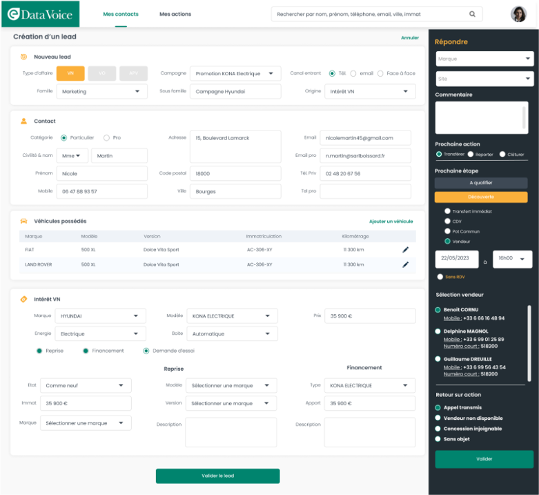 • Saisie simplifiée des leads entrants téléphoniques et showroom via une interface intuitive