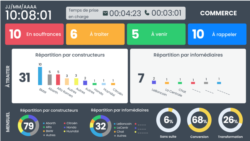 • Vision globale en temps réel du pipe commercial (VN, VO et APV)